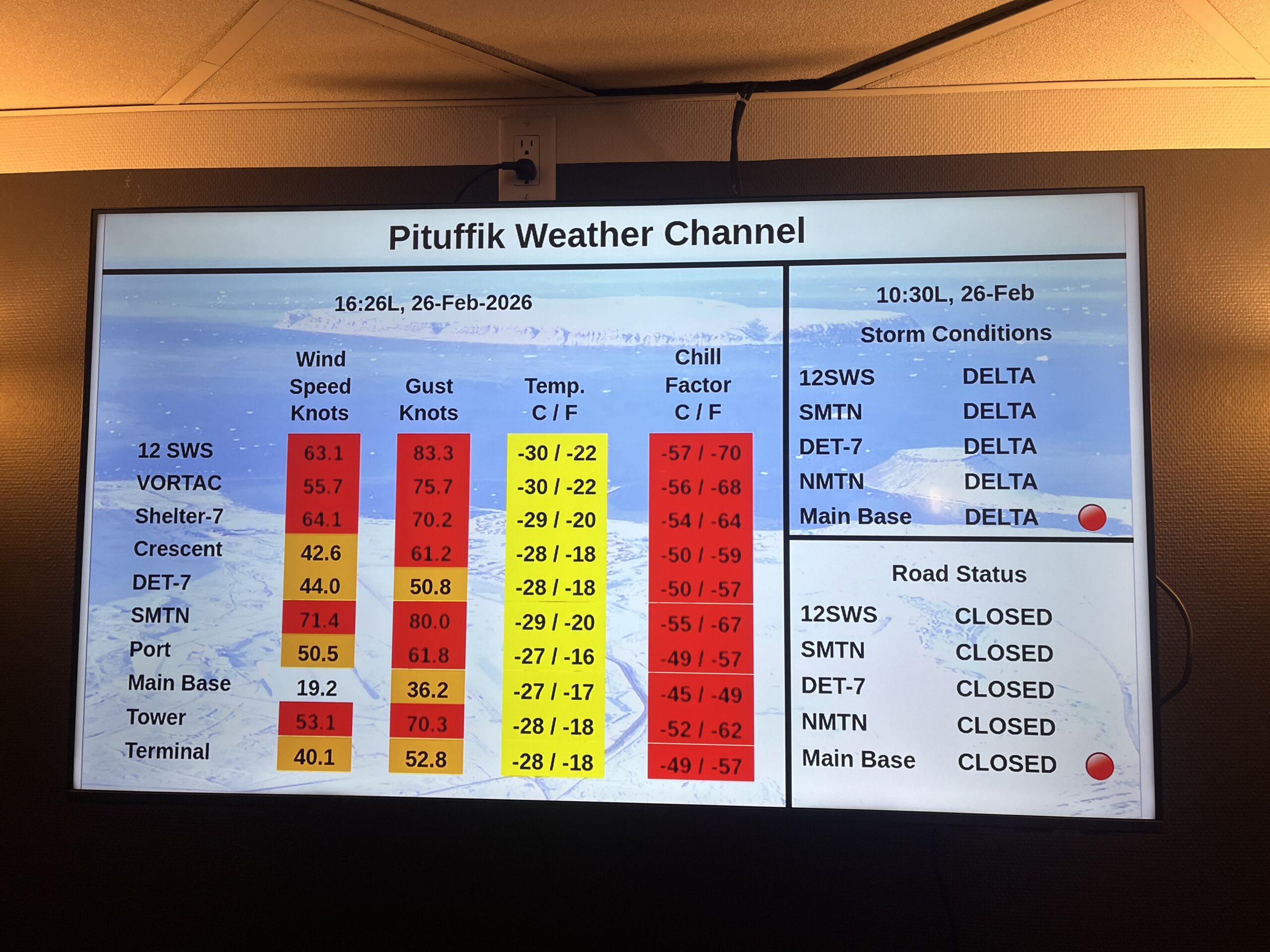 Weather – Weather delays are something every polar research team faces. This season we were immediately hit with a huge storm in early March that confined us to our dormitory for three days. Sustained winds were over 30 knots, with gusts up to 60 knots – there was no going outside for anyone. Beyond storms, low visibility makes sea ice travel dangerous, both for driving and spotting wildlife, and can be a reason to change a day’s plans.