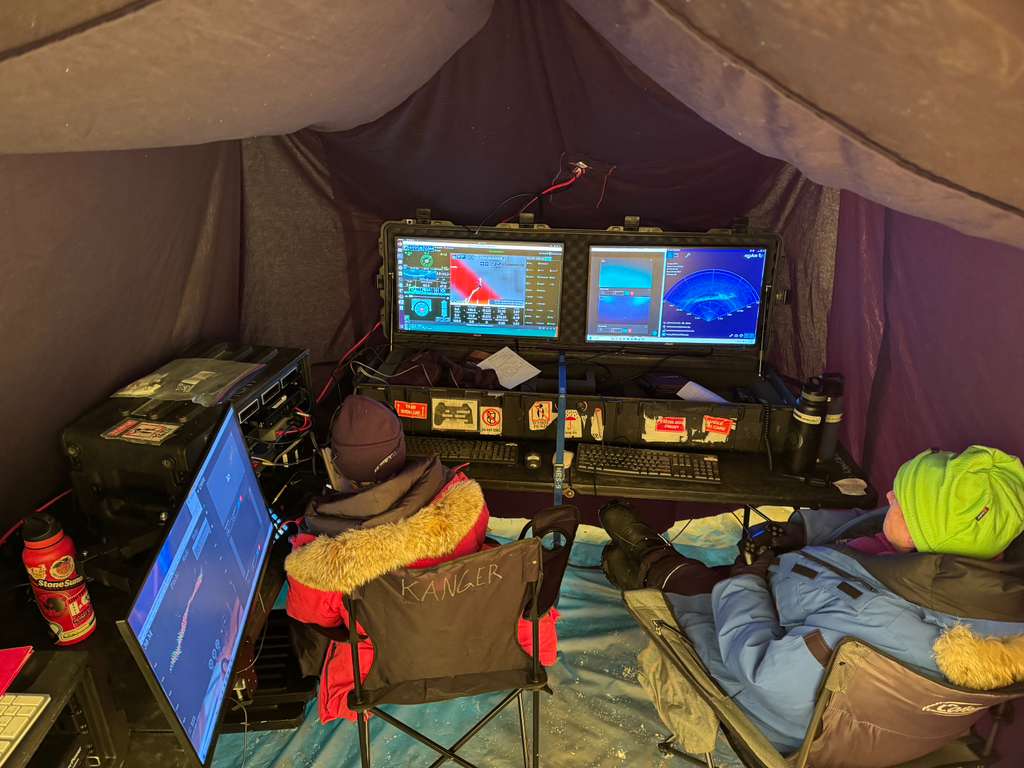 SUIMS – As part of SSHOWUP’s ongoing technology development goals, we completed the first field deployment of the Submersible Under-Ice Mass Spectrometer (SUIMS). Following its initial proof-of-concept testing during the previous season, the instrument has undergone significant upgrades informed by those earlier results, with expanded science and engineering objectives. Key improves include the addition of an external battery module, which allows SUIMS to operate independently of surface power and removes a major limitation on deployment depth, as well as the integration of a fiber optic communication system to enable extended deployments. The system is also now equipped with integrated temperature and pH sensors allowing simultaneous measurement of environmental conditions alongside dissolved gas composition.